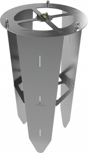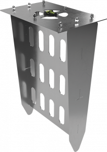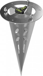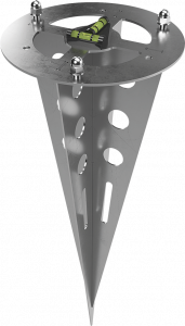 Die Bodenanker aus massivem Edelstahl dienen als Verankerung im Mörtelbett oder Erdreich. Mit montierter Wasserwaage zur einfacheren Nivellierung des Bodenankers.