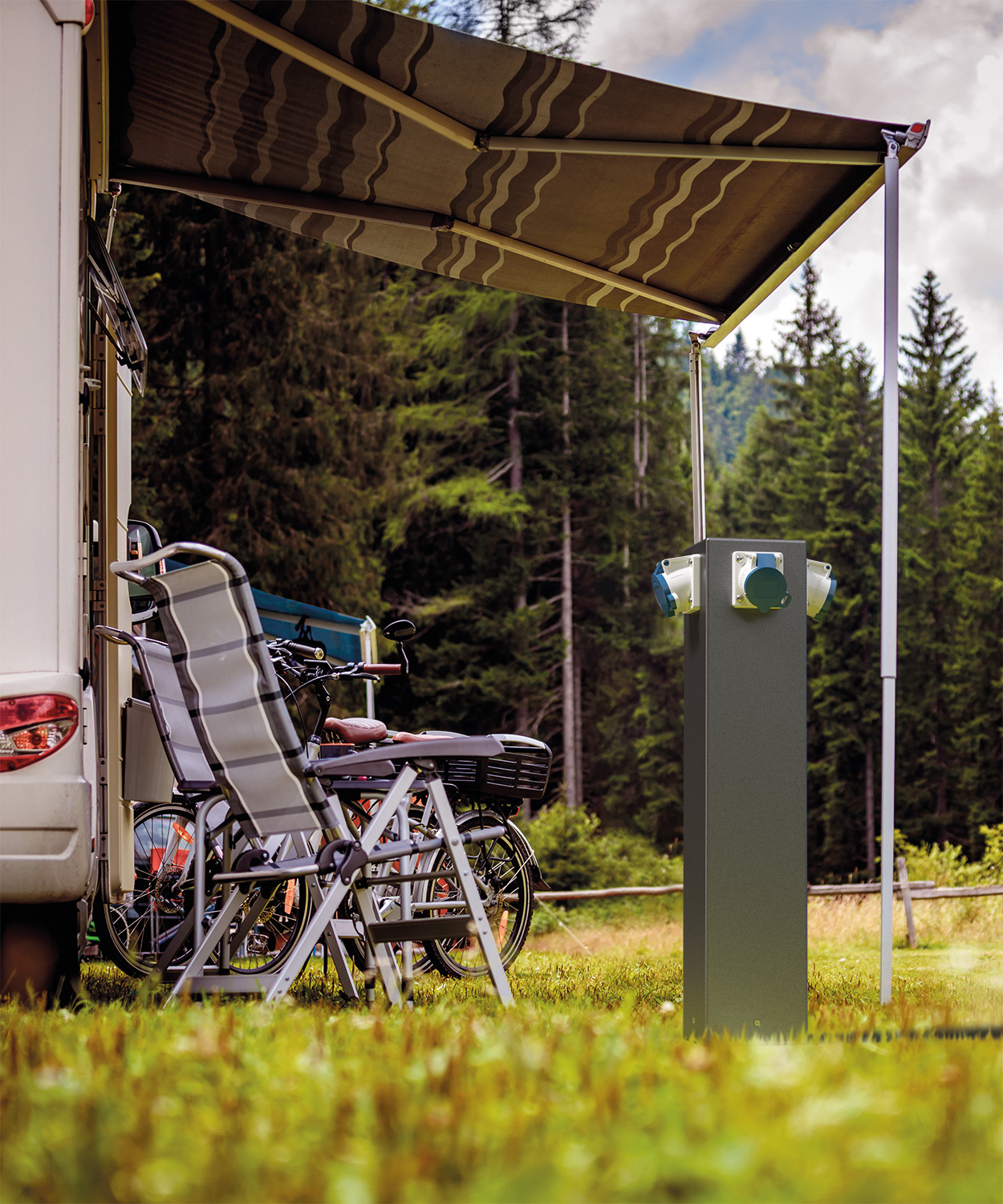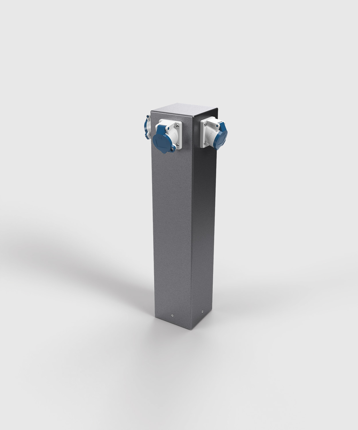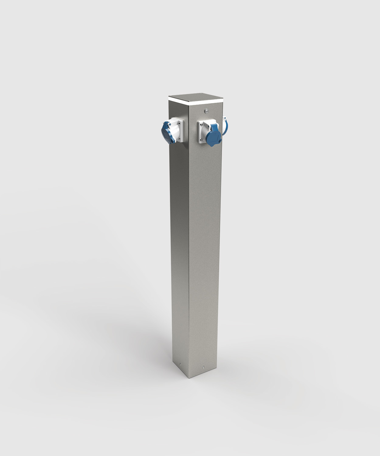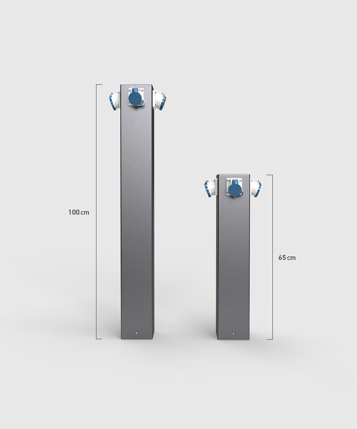 Campingsäule/Marinasäule ES882 für den Außenbereich, wahlweise 65 cm oder 100 cm hoch. Das Gehäuse der ES882 ist aus einem Aluminiumprofil gefertigt und deshalb ideal für den Außenbereich. Standardmäßig wird die Säule in den Farben DB701 oder DB703 (Grautöne) ausgeliefert. Andere Farben, wie z. B. nach RAL, sind nur gegen einen Aufpreis umsetzbar. Optional kann die Säule mit Beleuchtung bestellt werden. Weitere Bestückungsvarianten auf Anfrage.