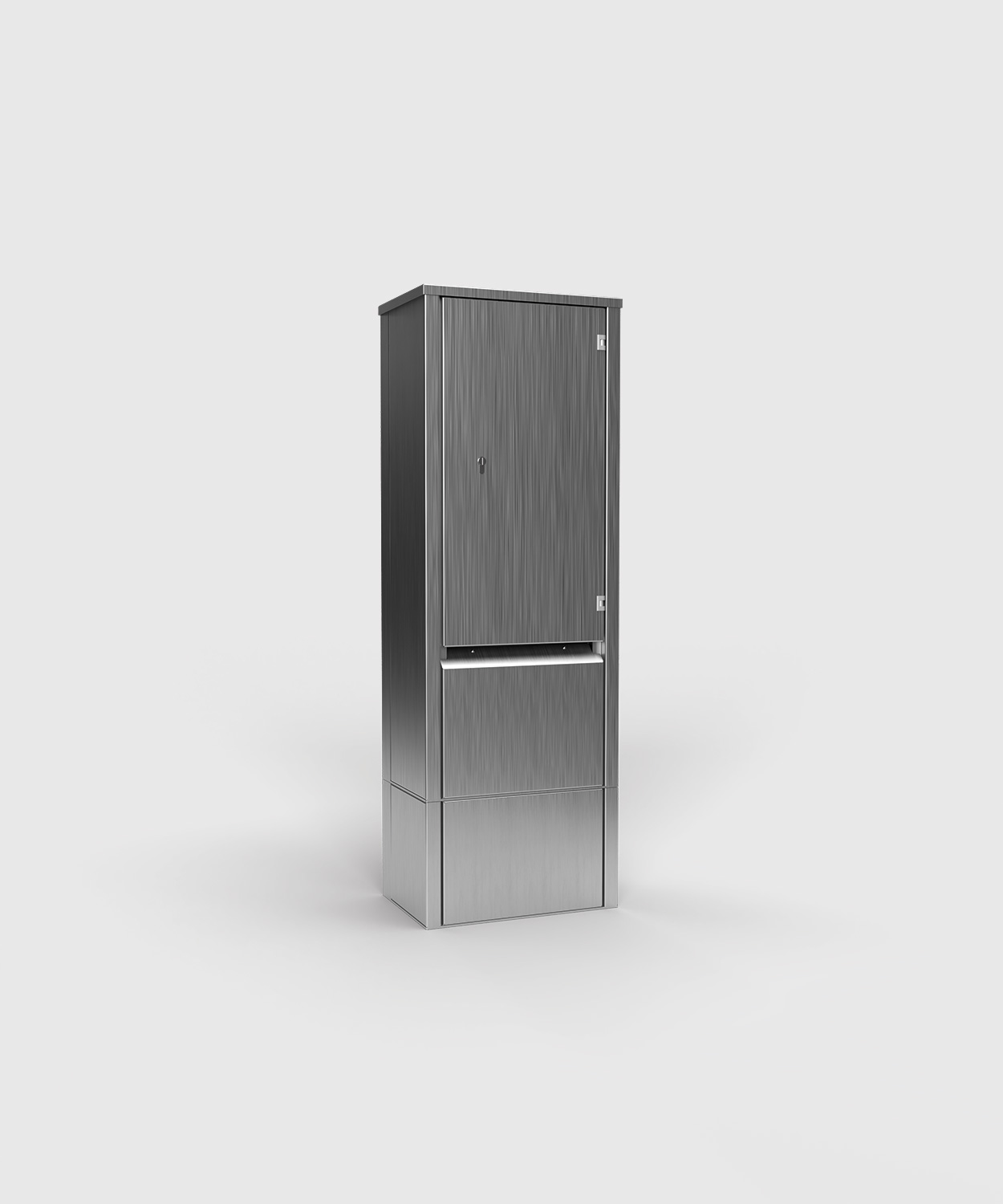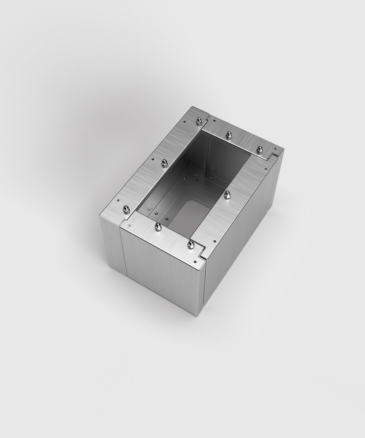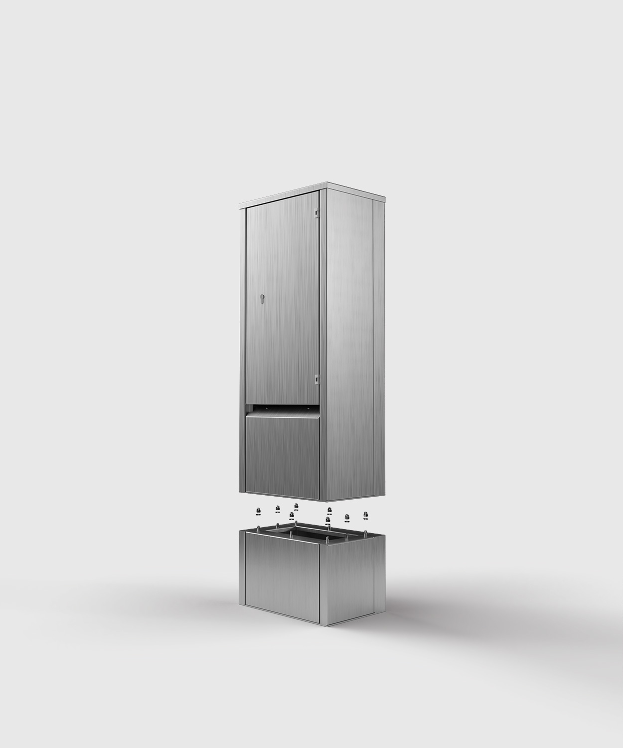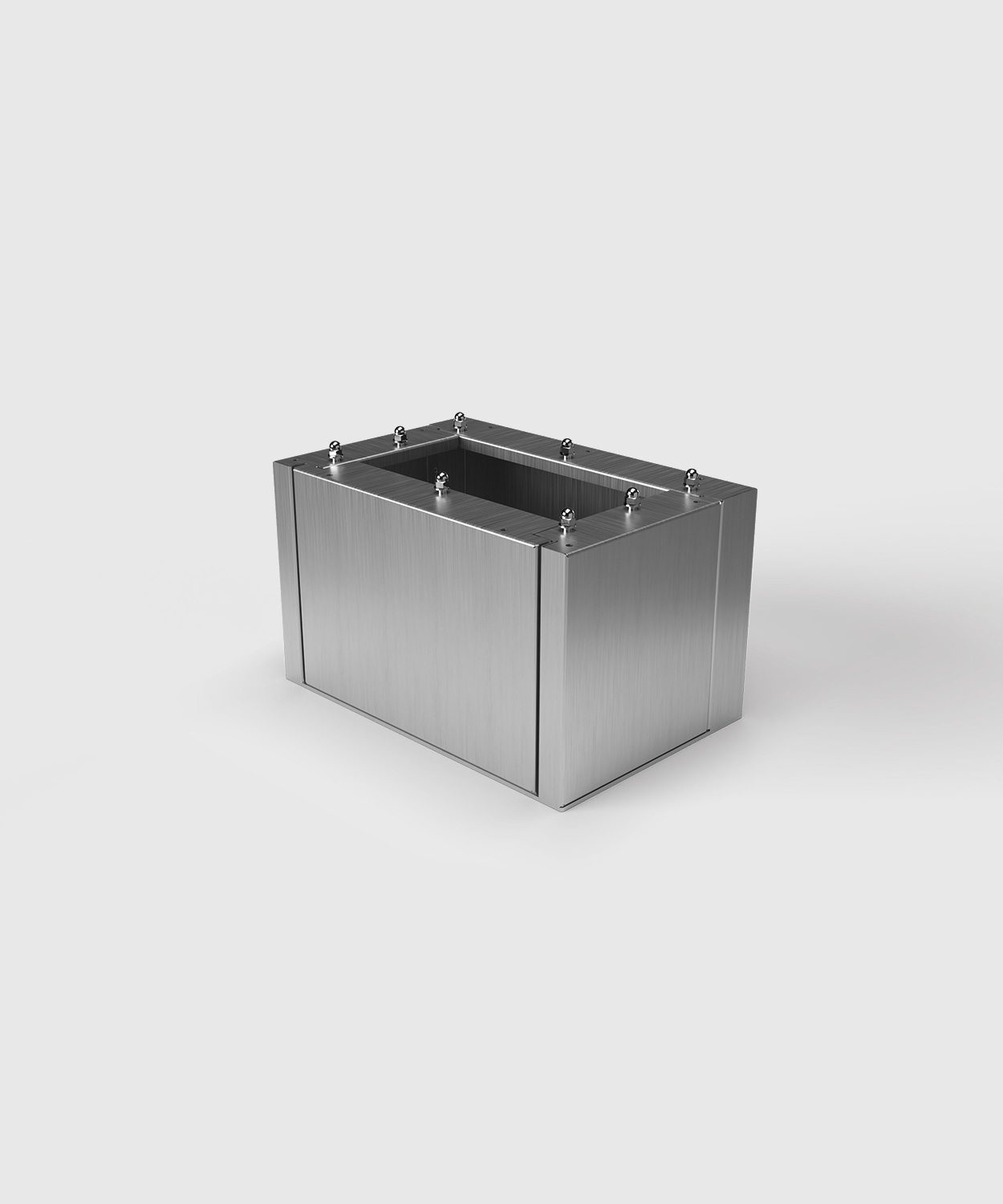 Sockel 12301 aus Edelstahl für die Stromsäulen/Stromkästen EST24 und EST25. Der Sockel dient als Unterbau für die Säulen und schafft Raum beim Anschluss für z. B. starre und unflexible Kabel, die fest im Beton sitzen.